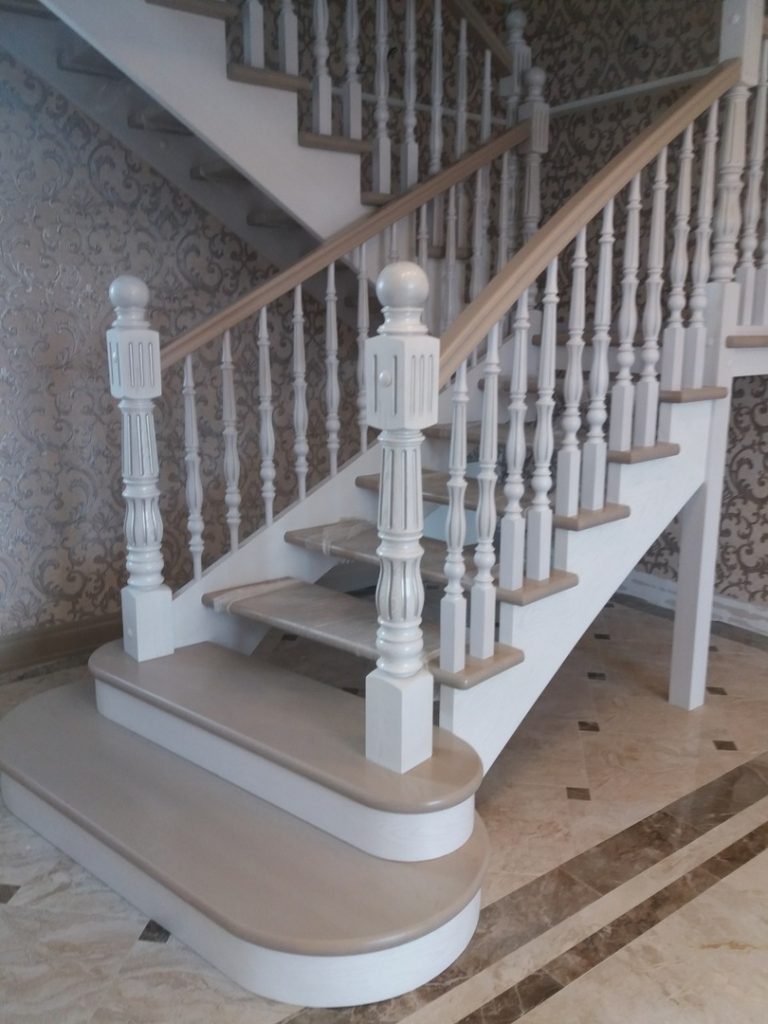 При изготовлении лестницы работаем с такими породами древесины как: сосна, лиственница, дуб, бук, ясень.